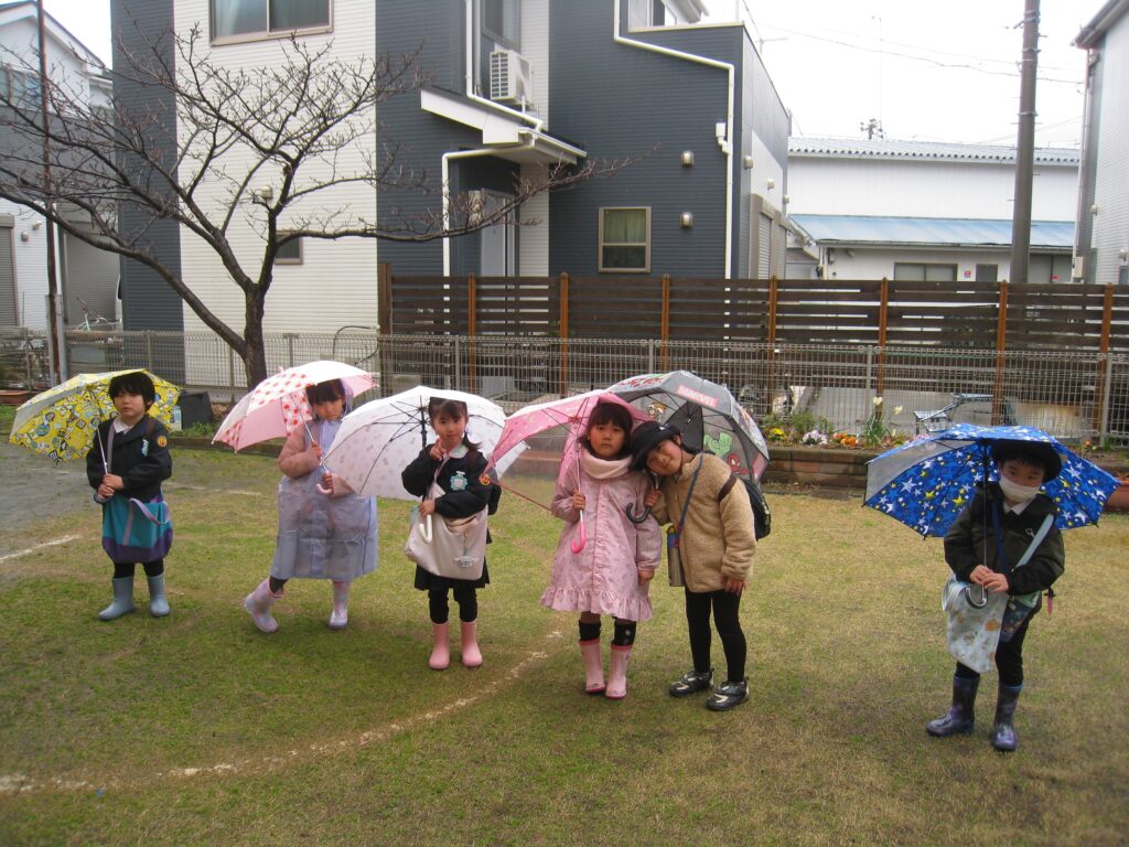 小学生になる前に、雨の日に傘をさしての登降園練習☔