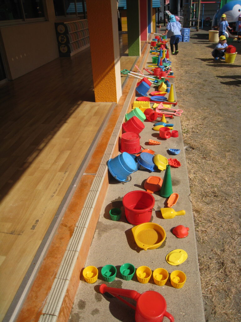 みんなで砂場のおもちゃをきれいにしました(*^-^*)