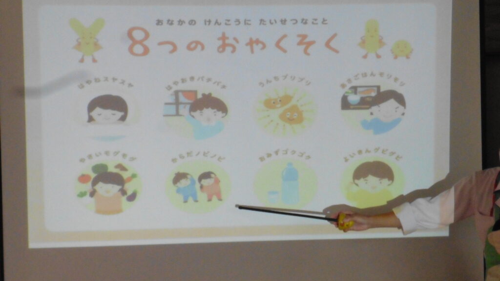 8つのおやくそくについてを守り、元気な身体つくりとバナナうんちの大切さ